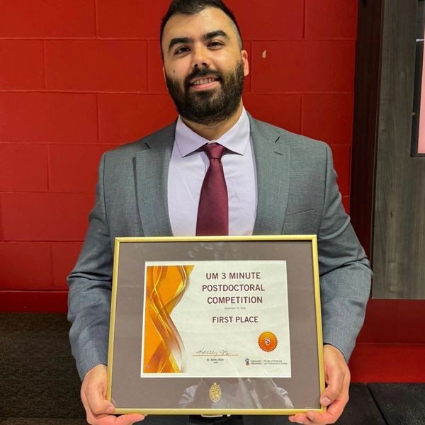 Michael won the first prize at the 2025 3-Minute-Research pitch competition. This is an event organized by the Faculty of Graduate and Postdoctoral Studies at UM. Congratulations, Mike! so well-deserved.